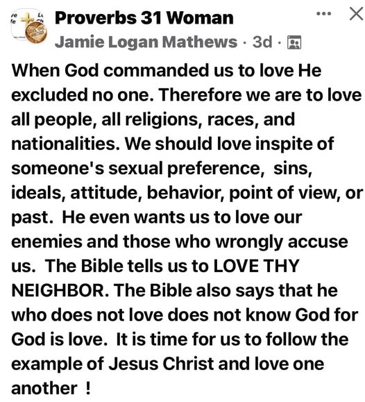 Yes, love with a discerning heart, a heart filled with the Holy Spirit, a heart full of wisdom ready to stand against deception, willing to STAND on the whole TRUTH. God is love and Holy, and the two stand in unison. God is a God of love, but God still condemns the reprobate mind (Romans 1), marriage is between a man and a woman, God created two sexes, male and female, and so many more.