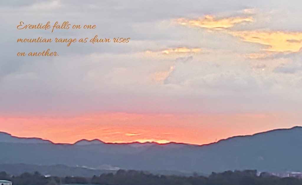Feb 18 Sunset evening wanes sunlight etches closer to twilight's shade (reference to age -etch-wrinkles)