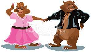 There’s nothing like a country bear dancing at the county fair. Joining in, a city sow twirling to a graceful bow. Hand-in-hand promenade stance, two partners, ready to dance. With’a two-step wiggle-bop, jumping to a wobble-hop. Polly pocket shuffle scoot, showing off in leather boots.